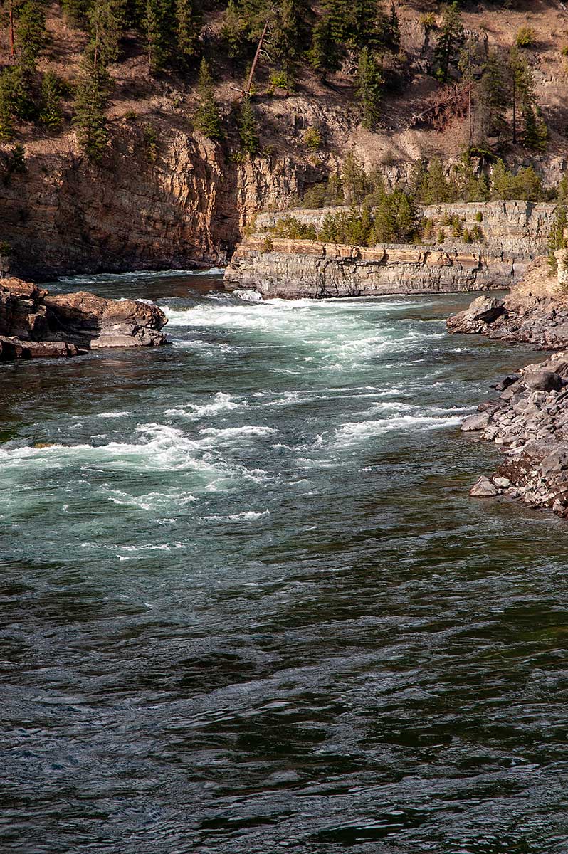 The main falls are 30 feet high and the River drops 90 feet in less than a mile. The Swinging Bridges gives excellent views of the Kootenai River.