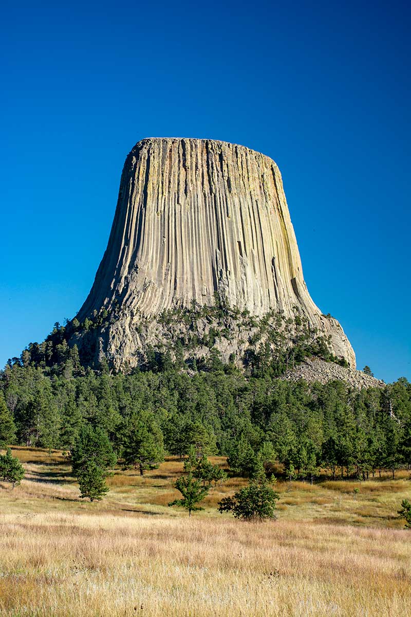 An astounding geologic monolith rises above the surrounding grasslands and Ponderosa pine forest. In 1906, Theodore Roosevelt established the Devils Tower as the first National Monument. It rises 867 feet above the base. It is a haven for climbers who come here from all over the world to climb this Tower.